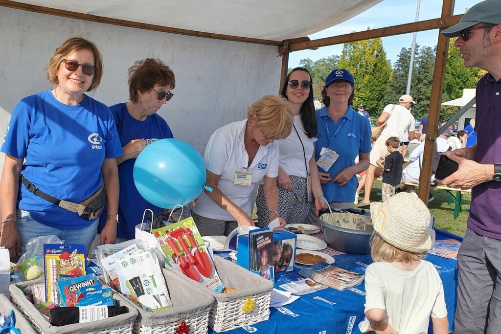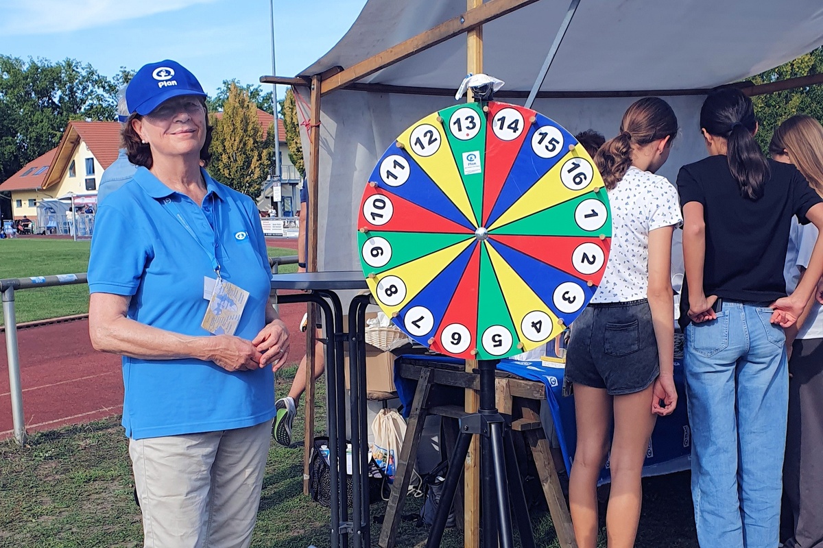 Anlässlich des Weltmädchentages haben wir einen Trainingstag extra für Mädchen organisiert. Über 100 Mädchen waren dabei und wurden von ihren Eltern und Freund*innen tüchtig unterstützt. Wir waren die Pausenstation, erzählten über Plan, haben alle mit Waffeln versorgt und mit unserem Glücksrad Spenden in Höhe von 455 € erzielt. Als Highlight kamen dann die Profifußballerinnen von Turbine Potsdam – und sie kamen alle! Fleißig gaben sie Autogramme und standen den Mädchen Rede und Antwort. Großen Dank an den Gastgeber RSV, an das Team von Turbine und an den Sponsor, die AOK, ohne die dieser Tag nicht so grandios verlaufen wäre.